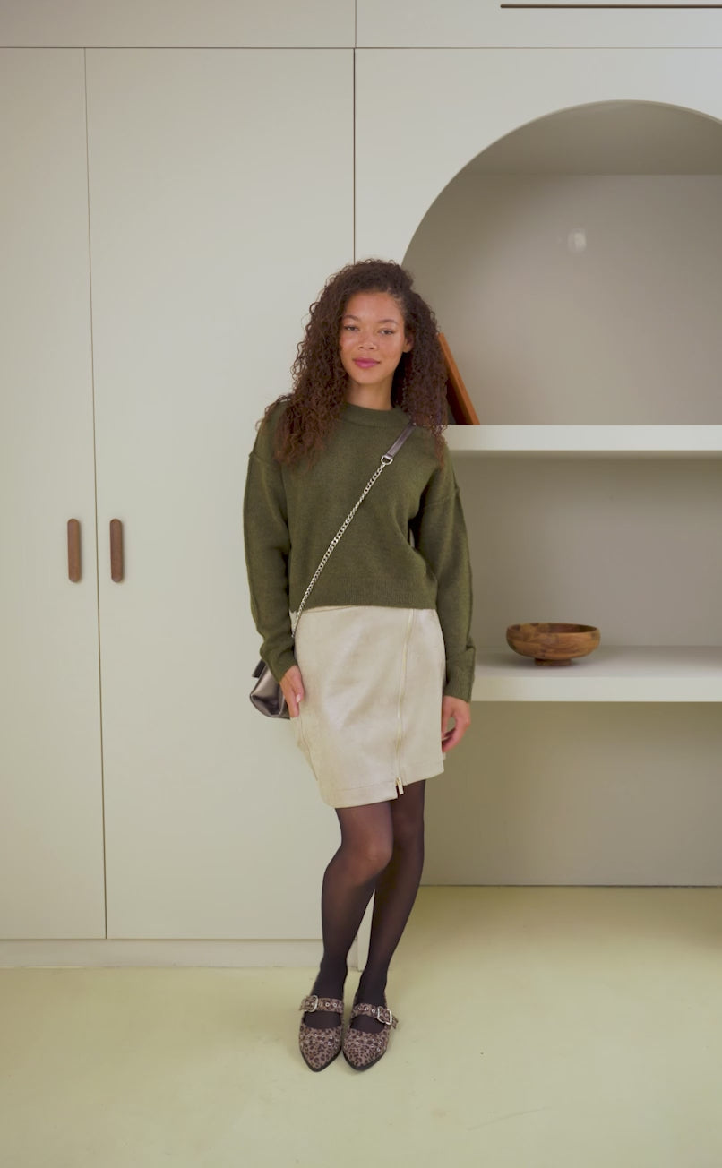 Pull col rond Marina kaki – Douceur intemporelle et style raffiné